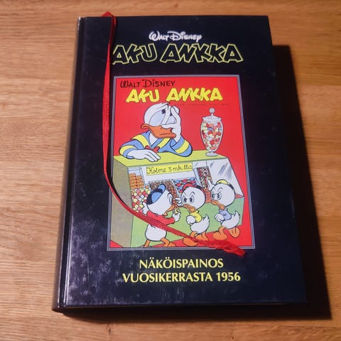 Aku Ankka kirja, näköispainos vuosikerrasta 1953. Painovuosi 1995. 559 sivua. Oikeassa alakulmassa pieni nirhaus.