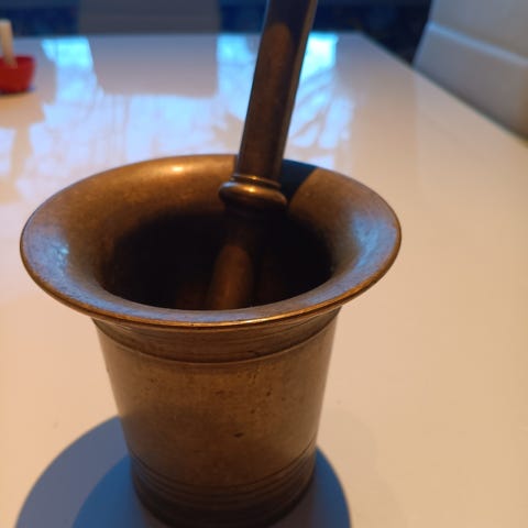 Huhmari korkeus 10cm halkaisija 8cm survin pit.14,5cm . Messinkiä leimattu , koristessa lukee Arabiaksi minä rakastan sinua.