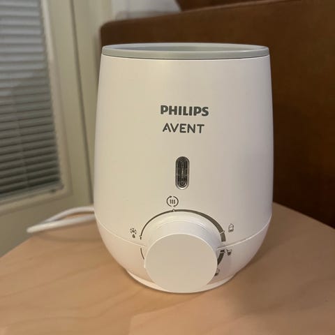 Muutaman kuukauden käytössä ollut tuttipullon lämmitin. Helppo käyttöinen ja näppärät säädöt lämmitettävän millimäärän mukaan.