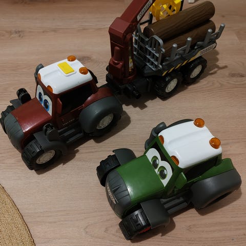 Traktori ja peräkärry myytävänä. Äänet ei kuulu. Muuten toimiva.