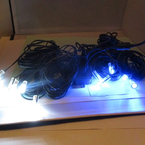 Tässä 10 kpl upotettavaa Led valoa. Valoista neljä on sinisiä ja kuusi valkoisia. Asennusreiän tulee olla halkaisijaltaan 20 mm ja ledin laippa on halkaisijaltaan 40 mm, vapaata tilaa takana tulee olla vähintään 32 mm. Mukana seuraa sähkön 10 paikkainen jakoyksikkö jolloin tarvitaan ainoastaan yksi 12 voltin syöttö. Verkkolaite ei seuraa mukana. Jokaisessa ledissä on n. 5 metrin kaapeli ja 5,5 mm uros jänniteliitin. Tässä auton tuunaukseen tai kalusteiden valaistukseen sopivat Ledit. Asennuksessa sähkönsyöttö tulee suojata sulakkeella. Toimituskustannukset ostajalle ellei nouto Lohjalta