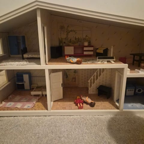 Ihana Lundby nukkekoti seuraavalle. Nukkekodin kunto on tosi hyvä. Muutamia pieni kuluman jälki. Sisätilojen on kalusteet kuuluu mukaan. Osassa enemmän leikin tuomaa kulumaa, kuten katkennut kahva. Osassa kalusteessa vähemmän.