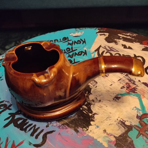 Myydään vanha lasinen tuhkakuppi, jossa paikka tulitikkurasialle. Mitat 11 x 7 cm.