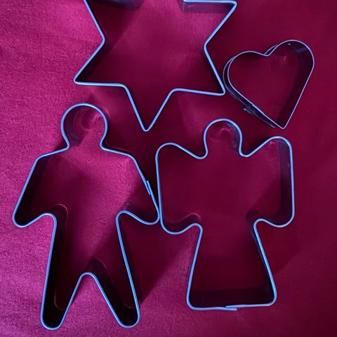 Piparkakkumuotit 7 kpl. Hinta 0,50 e / kpl, kaikki yhteensä 3 e.