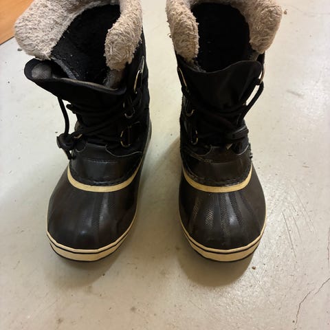 Myydään ehjät ja siistit Sorelit koko 34. Kengän sisällä karva jo hieman kulunut käytössä, mutta edelleen toimivat kengät seuraavalle.