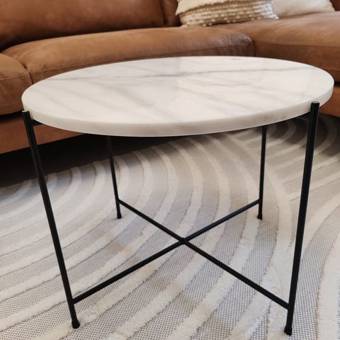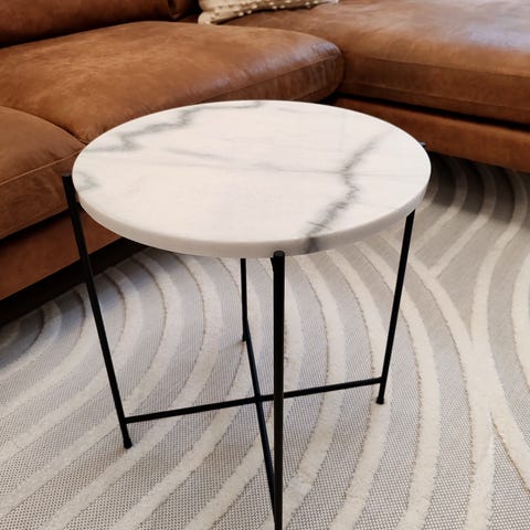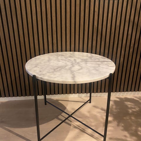 Pöydät ovat aitoa marmoria ja jalat mustaa metallia, painavat ja pysyvät hyvin paikoillaan. Tyylikkäät joko vierekkäin, lomittain sohvapöytinä tai erikseen, toinen sivupöytänä.