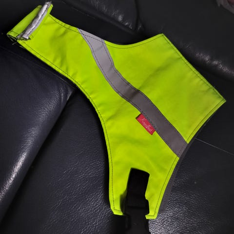 Hyväkuntoinen kääpiövillakoiran käytössä ollut Brava Rokka huomioliivi, koko XS.