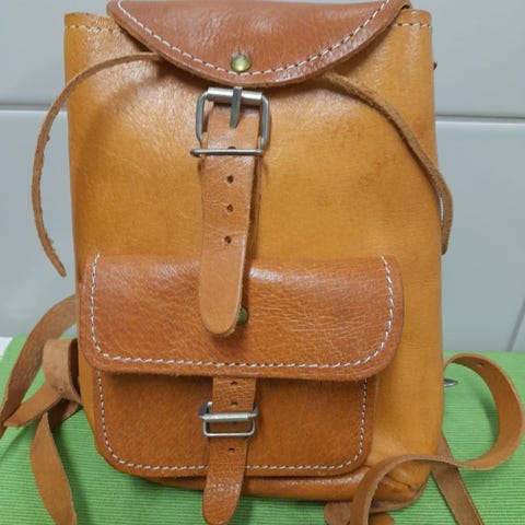 Myydään boheemin tyylinen nahkareppu, erinomaisessa kunnossa. Ei taidettu koskaan käyttää. Nahkaa ja kangasta. Säädettävät hihnat, sisässä pieni vetoketjullinen tasku ja edessä kaksi pientä soljellista taskua.