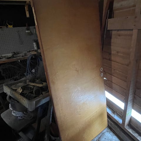 Ovi karmeineen. Karmin korkeus korkeintaan 204 sm. Sileä mäntyviilupinta mieluiten. Myös muu. Ei kovin etäältä Mäntyharjulta.