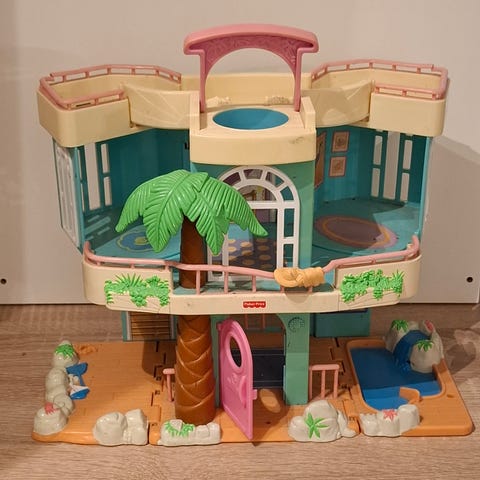 Muovinen nukkekoti on vahvaa tekoa, palvellut jo kahdessa polvessa. Kestää hyvin nuorimmankin leikkijän otteita.