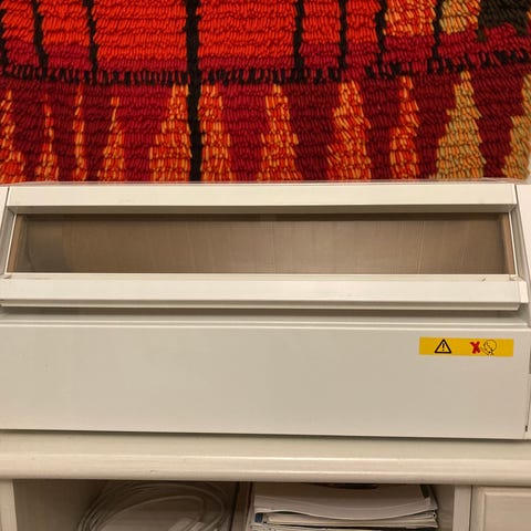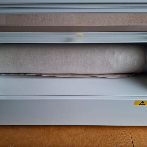 Kangas hieman rullaantunut kuten kuvasta näkee, mutta ei juuri haittaa käyttöä.