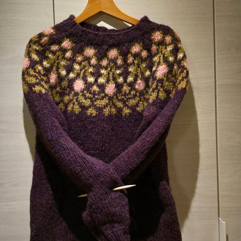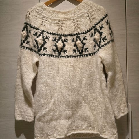Uusi, kaunis käsintehty villapusero islantilaisesta Alafoslopista. Rinnanympärys n.102cm. Hihat n.49cm. Kainalo-helma n.45-47cm. Tarvittaessa lisäksi postituskulut.