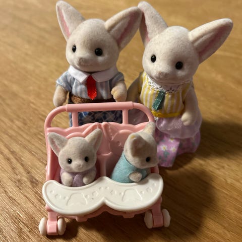 Myydään hyväkuntoinen Sylvanian families vaahtokarkkihiiriperhe.