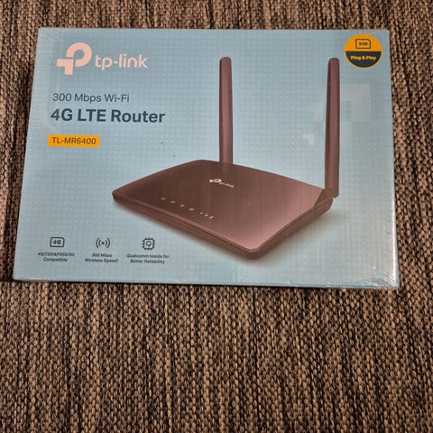 TP-Link Archer MR600 4G+ Cat6 AC1200 langaton reititin, jossa on Dual Band Gigabit -yhteys. Mukana virtalähde. Sopii langattomaan verkon jakamiseen kotona tai toimistossa.