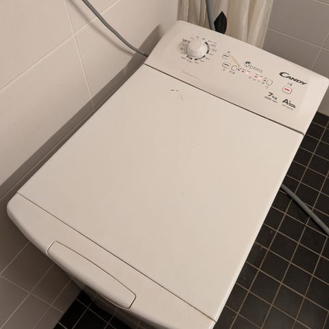 Useamman vuoden käytössä ollut, mutta vielä hyvin toimiva päältä täytettävä pesukone. VAIN NOUTO Tikkurilasta.
