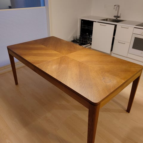 Kave home Lotus-ruokapöytä lasisella kannella ja vaaleaksi käsitellyt tammijalat. Erittäin hyvässä kunnossa ja kaunis pöytä. Hyvin mahtuu neljä ja tarvittaessa kuusikin istumaan pöydän ääreen. Mitat: Korkeus 77 cm ja halkaisija 120 cm.