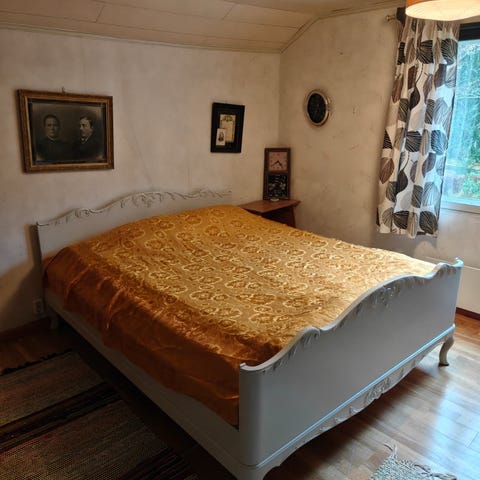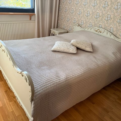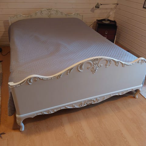 Uusrokokoo tyylinen parisänky uudehkoilla patjoilla. Kunnoltaan uutta vastaava.