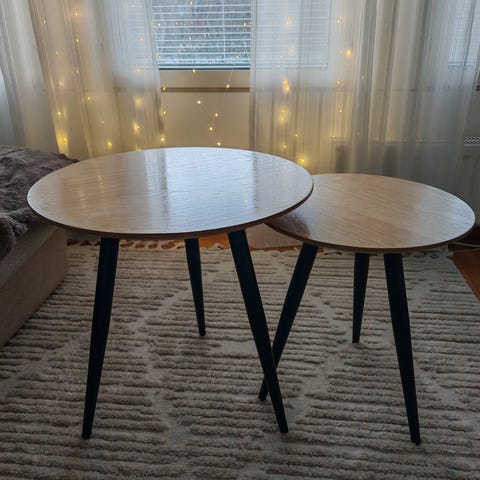 Myydää kaksi sohvapöytää. Pienemmä leveys 40cm. Hinta yhteensä 60€