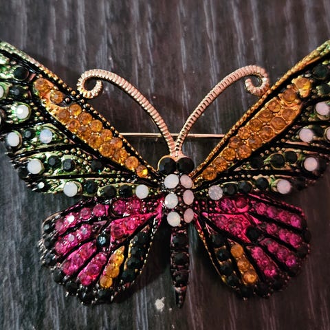 Perhosaiheinen rintakoru naisille, valmistettu muusta materiaalista.
