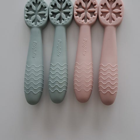 Pitkä varsi helpottaa syöttämistä, pehmeä silikoniosa on hellä vauvan hampaille ja ikenille. Suosittelen!