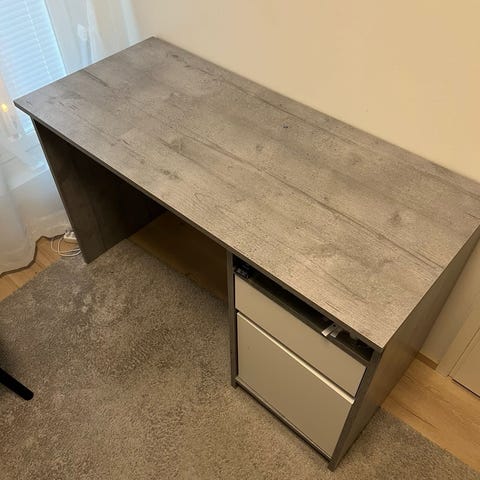 Hyväkuntoinen työpöytä kahdella laatikolla. Pinnassa muutama pieni naarmu, ei hyppää silmille. Siisti!
