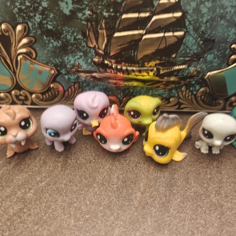 Myynnissä kuvan Littlest Pet Shop hahmot. 10e/kpl