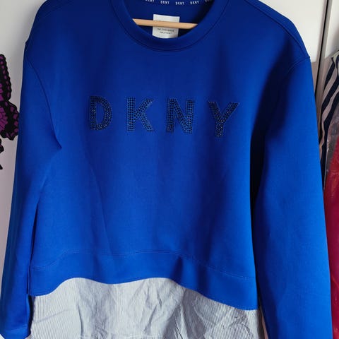 Tästä itselle tai pukinkonttiin tyylikäs DKNY Sport -merkin puuvillainen pidempi collegepaita, jossa sporttiset lyhyet hihat. Koko S. MMM