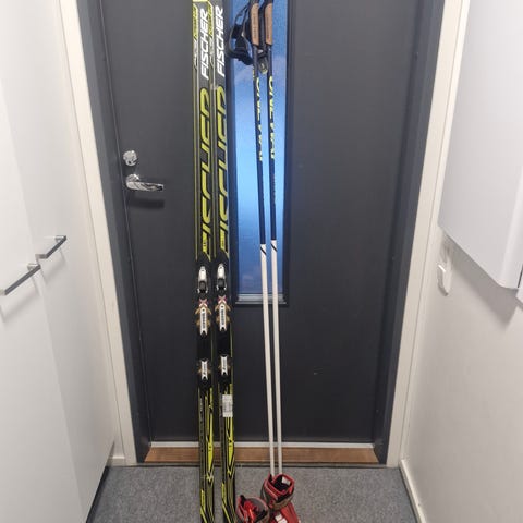 Fischer-merkkiset sukset (pituus 185 cm), sauvat (pituus 135 cm( sekä Salomon-merkkiset hiihtomonot koko 38, väri harmaa ja punainen. Soveltuvat sukseen kiinnitettäväksi, pohjassa kiinnitysjärjestelmä. Käytettyjä, hyväkuntoiset. Vain nouto.