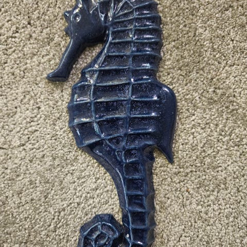Keramiikkapaja kolme ruukkua valmistama merihevonen. Kork. 19cm. Hyväkuntoinen