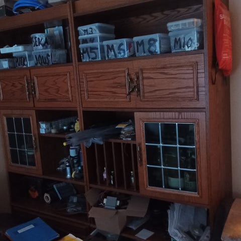Annetaan senkki / lipasto, jossa kulumisen jälkia. Päällisen jäljet peitetty liinalla. Muutoin tukeva, ei heilu tms.