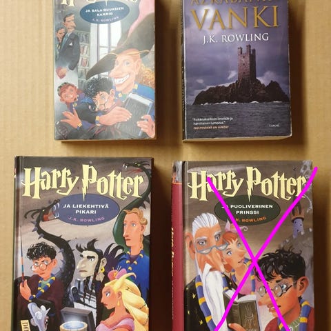 Myydään hyväkuntoiset Harry Potter kovakantiset kirjat. Kirjat ehjät ja yleisilmeeltään siistit.