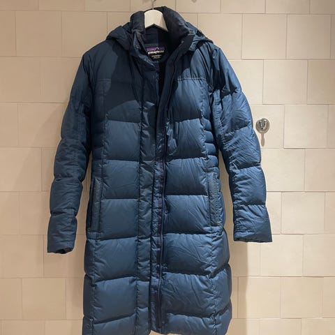 Myydään hyvässä kunnossa oleva naisten Patagonia merkkinen tummansininen untuvatakki. Koko M. Muhkea ja lämmin. Irrotettava huppu. Hihansuissa lievää kulumaa (katso viimeinen kuva).