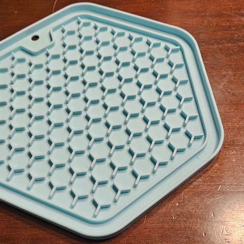 Kuvanmukainen koiran nuolumatto,käy pienellekin pennulle,syömisen hidastamiseksi ja koiralle enemmän tekemistä pidempään.5€.