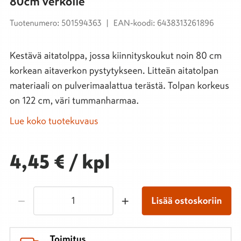 Myyjä ei ole vielä aktivoinut ToriDiiliä. ToriDiili on Torin uusi maksu- ja kuljetuspalvelu, jolla kotiutat torilöydöt nopeasti ja turvallisesti. Lue lisää