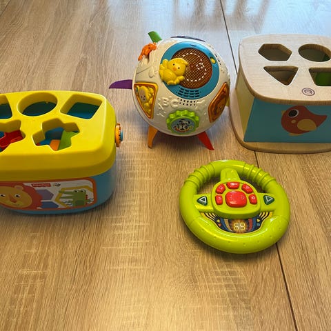 Myydään settinä hyväkuntoisia vauvan/taaperona leluja. Sopivat esim lahjaksi/pukinkonttiin. Aktivointilelu, palikka, pulmapeli, rattaisiin kiinnitettävä ratti, soivia leluja, vilkkuvat valot