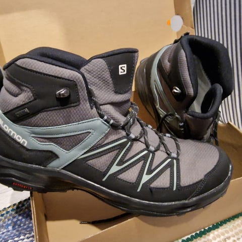 Hyväkuntoiset mustat Salomonin vaelluskengät.
