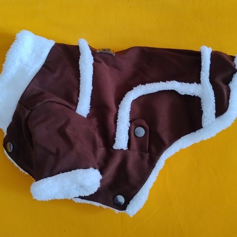 Ihana pinkkimusta takki pienelle koiralle. Selkä n. 30 cm ja alaosa n. 18 cm. Selässä reikä valjaille/hihnalle.