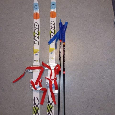 Ensisukset 100 cm. Käyvät talvikenkiin. Ei tarvita voitelua, pitopohjana kuviointi.