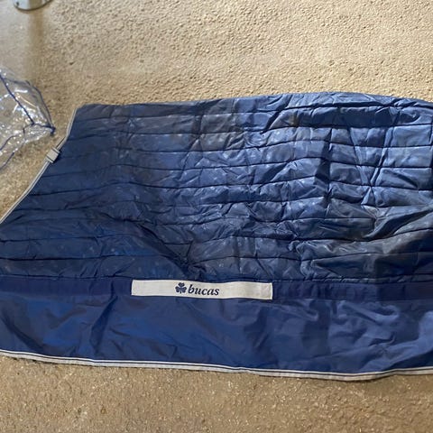 Mukaan saa myös kaulaosan, tämäkin on Irish -mallistoa ja olen sen uutena ostanut, mutta ostettuani huomasin sen olevan vanhempaa mallia kuin loimi! Eron huomaa siis tekstistä. Sopii silti loimeen hyvin ja sitä siitä olenkin käyttänyt 😊 Myös kaulakappaleessa 50g täyte.