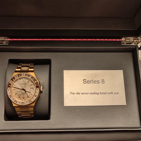 Citizen Series 8 GMT LIMITED EDITION. Hyväkuntoinen ja erikoinen. Rannekkeessa pari pientä hiusnaarmua muuten uudenveroisessa kunnossa. Hyvä tilaisuus nyt. Kaupoissa loppuunmyyty. Kaupat onnistuu myös helsingissä.