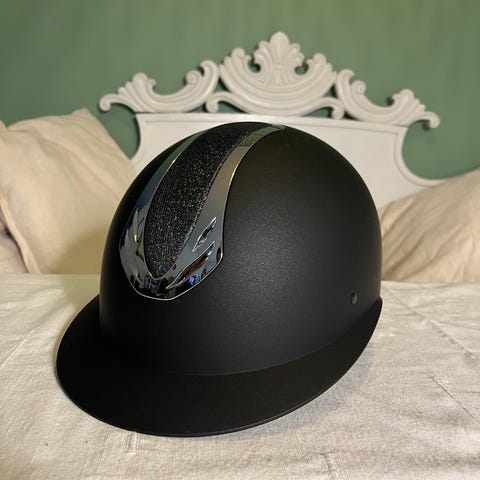 Antarés-kypärä krafiitinvärisenä. Käytetty vain kilpailuissa. Ostettu Falsterbossa 2024