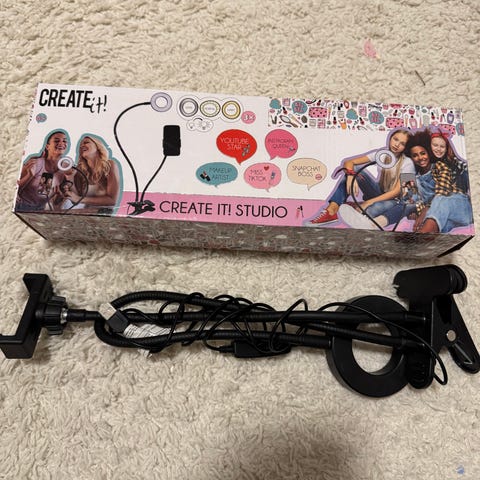 Käyttämätön kuvausvalo kännykkäpidikkeellä, usb-liitäntä, korkeus säädettävä, 15€