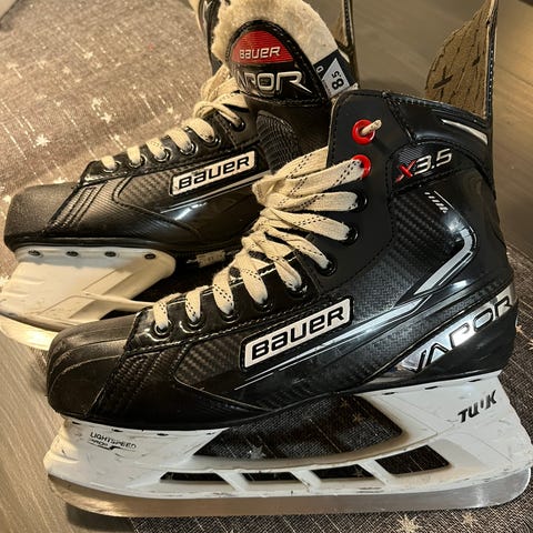 Hyväkuntoiset Bauerin luistimet koko 7,5 (pohjallisen pituus päästä päähän n. 26,5 cm). Pidetty vain muutaman kerran yhden talven aikana, uutena meille hankitut.