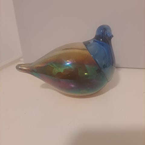 Käsintehty lasinen koristelintu Tukku Matildalta. Kaunis ja ajaton sisustusesine, joka sopii hyllylle, pöydälle tai vitriiniin. Jokainen yksilö on hieman erilainen käsityön ansiosta.