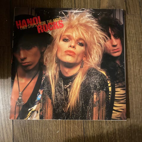 Myynnissä alkuperäinen Hanoi Rocks -single Cafe Avenue / Tragedy. Visuaalinen kuntoarvio levylle on vg++. Johanna, JHNS 174.
