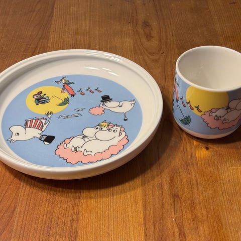 Muumit Lasten Lautanen ja Lusikka Vaaleanpunainen Silikoni