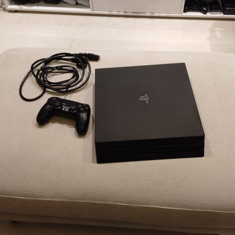 Sony Playstation 4 pelikonsoli, mukana kolme toimivaa ohjainta (2 mustaa ja 1 sininen), liitäntäkaapelit sekä NHL 19 -peli. Konsoli ja tarvikkeet soveltuvat Playstation 4 -pelien pelaamiseen.