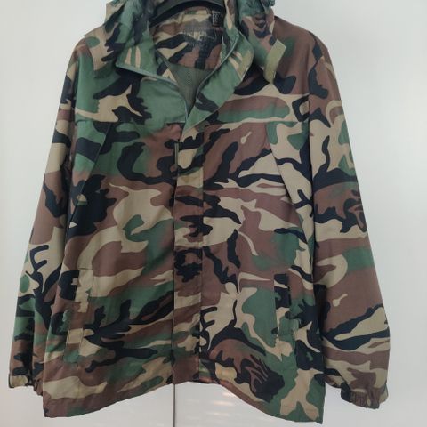 Myyntiin, puhdas (pesty) , muutamia kertoja käytetty paitatakki. Koko arvio 2xl. Sisällä ohut vanuvuori, rinta taskut, kiinnitys neppareilla.