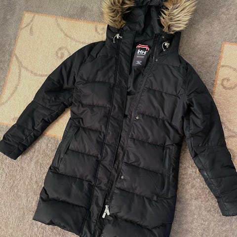 Upea, mukava päällä. Lämmin. Musta. Helly Hansen. Karvareunus, joka irroitettavissa. Koko L.