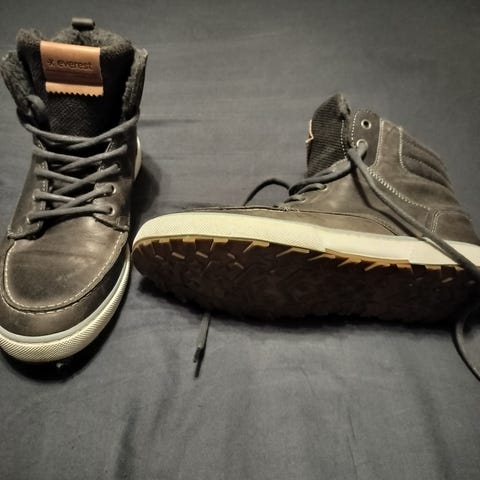 Myydään Everestin talvikengät. Väri musta. Lämpimät kengät, ja pitävät pohjat. Ostettu viime talvena, oli suht vähäisessä käytössä, koska ei ollut kunnon talvea... Muuten oikein hyvässä kunnossa, mutta oikean kengän kärjessä pinta ottanut osumaa.